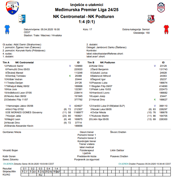 –Tri pobjede zaredom, očito smo svi skupa bili u zoni komfora, ekipa iz Podturna nam je očitala lekciju, bili su agresivni, taktički dobro stajali na terenu, potpuno zaslužena njihova pobjeda koja je mogla biti i veća. Kad je nama golman kojemu jedino možemo dati ruku na kraju utakmice, onda je sve rečeno. Težak, neugodan poraz na domaćem terenu, sve je to sastavni dio sporta. Čeka nas jako težak tjedan, ali pokušat ćemo dignuti moral ekipi, otkloniti greške i čim bolje se pripremiti za Međimurec– Nikola Goričanec, NK Centrometal.
