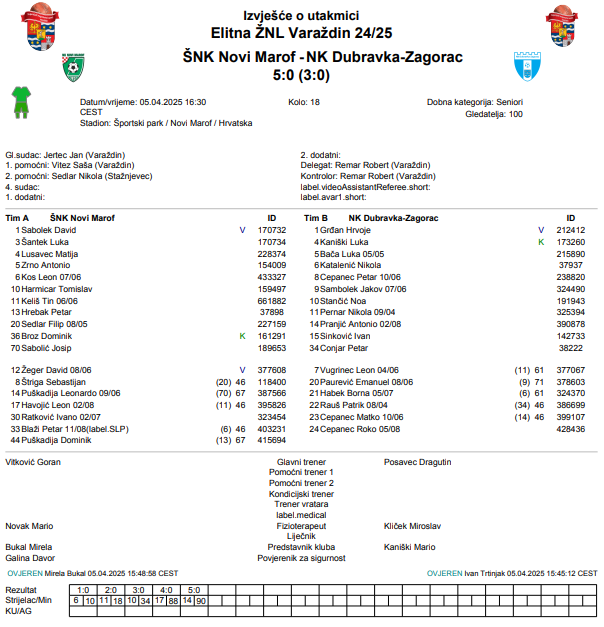 ŠNK Novi Marof – NK Dubravka-Zagorac 5:0
