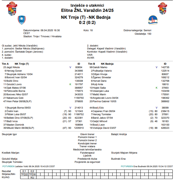 Odigrali smo utakmicu koja je mogla otići u drugom smjeru, da smo realizirali neke šanse u prvom poluvremenu. Nismo dobro reagirali u jednoj situaciji i primamo gol za 1-0 i tim rezultatom odlazimo na odmor. Ušli smo dobro u drugo poluvrijeme, trud i zelja je bila prisutna, ali očito je da imamo problem realizacije koji nas prati već jedno vrijeme. Nismo uspjeli doci do gola za 1-1, a u zadnjoj sekundi primamo i drugi gol za 2-0. Čestitke protivniku na pobjedi. Vjerujem da je serija loših rezultata iza nas i da je vrijeme da se uz sve probleme koji nas prate od početka ove polusezone situacija promjeni na bolje– Goran Klemenčić, Jalžabet.