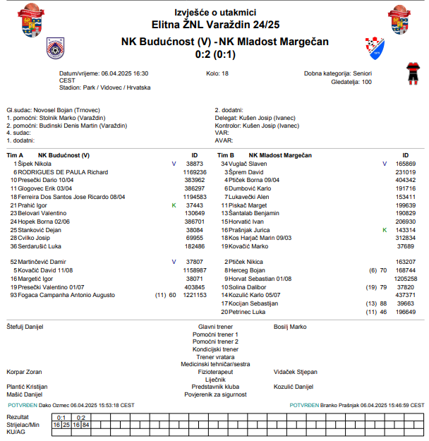 18. Kolo Elitne ŽNL Varaždin: Dva pogotka za pobjedu