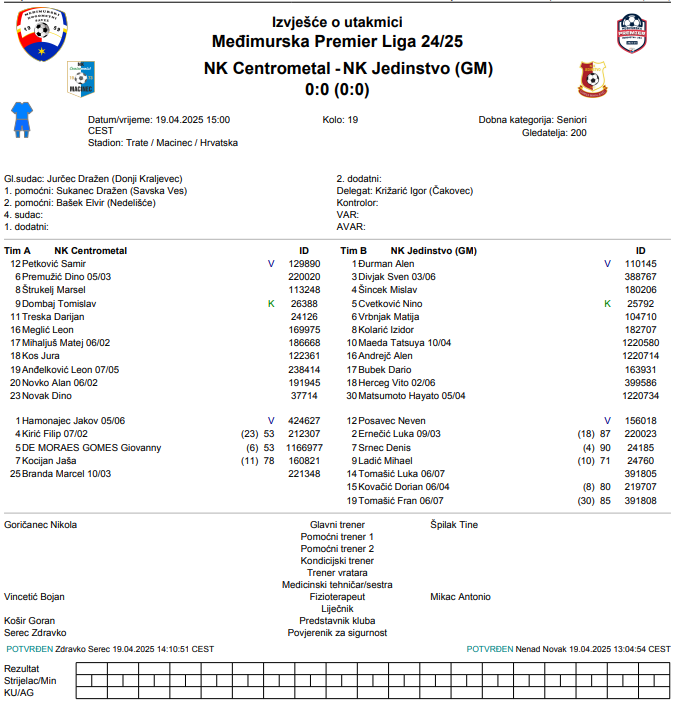 –Realno bod svakome, ali sam razmišljanja da je ekipa Jedinstva bila bliža pobjedi, mi smo u zoni komfora i moramo pronaći način da se dignemo, moji igrači odrađuje utakmice, a ne daju energiju koja je potrebna s obzirom na kvalitetu koju imamo. Treba naći način kako da se izvučemo, probudimo, a u takvim situacijama je trener ključ kao i uprava kluba– za Sportalo je izjavio Nikola Goričanec. Trener momčadi NK Centrometal.