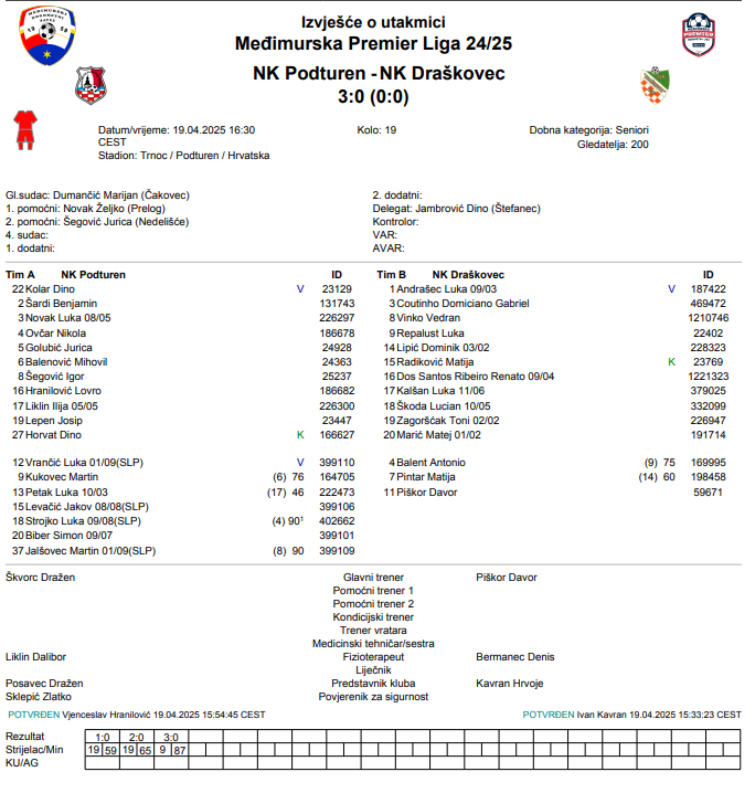 –Teško gostovanje kod druge ekipe lige gdje smo oboje bili u problemima oko slaganja ekipe. Prvo poluvrijeme smo pružili odličan otpor i čak imali stopostotnu šansu koju nažalost nismo realizirali. Drugo poluvrijeme je domaćin dominirao i na krilima najboljeg veznog igrača lige Lepena odveo Podturen do sigurne pobjede. Moramo se prebrojit, ekipirat i probat pobijedit kod kuće Belicu– Davor Piškor, trener momčadi NK Draškovec.