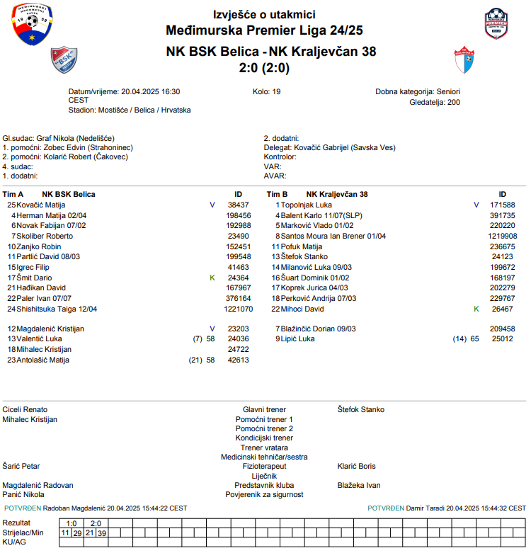 NK BSK Belica – NK Kraljevčan 38 2:0