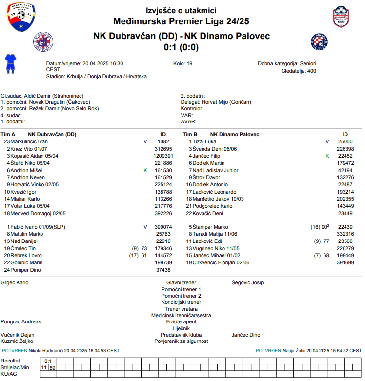 NK Dubravčan (DD) – NK Dinamo (P) 0:1