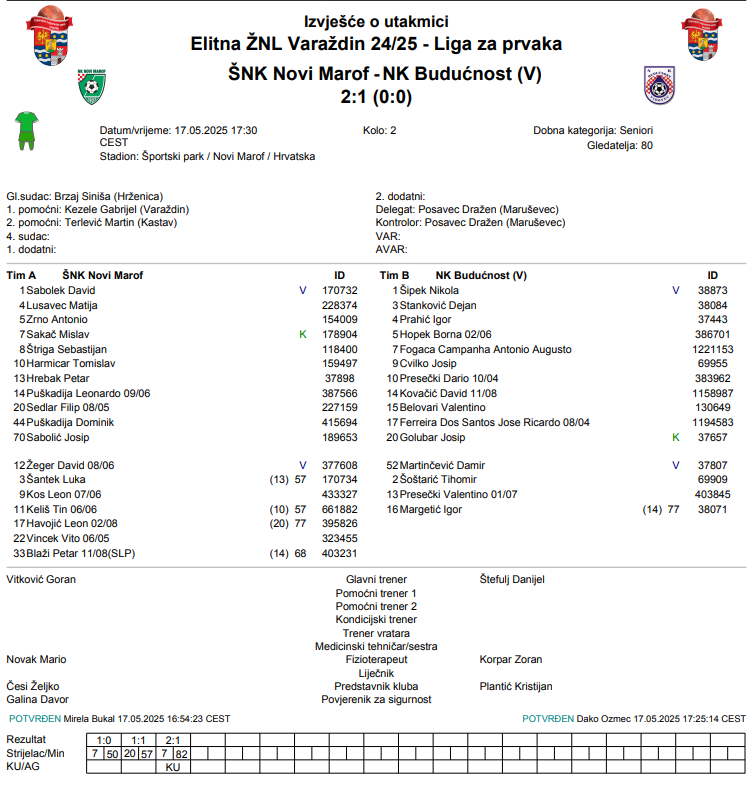 ŠNK Novi Marof – NK Budućnost (V) 2:1