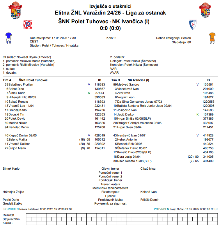 Do sada su odigrane četiri utakmice lige za ostanak, od kojih su čak tri završile remijem. Nova podjela bodova i na susretu u Tuhovcu. Ivančica i Polet za sada nemaju prevelike brige oko opstanka ove sezone.