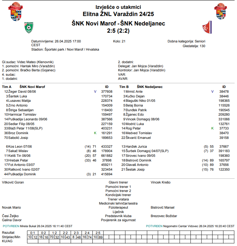 ŠNK Novi Marof – ŠNK Nedeljanec 2:5