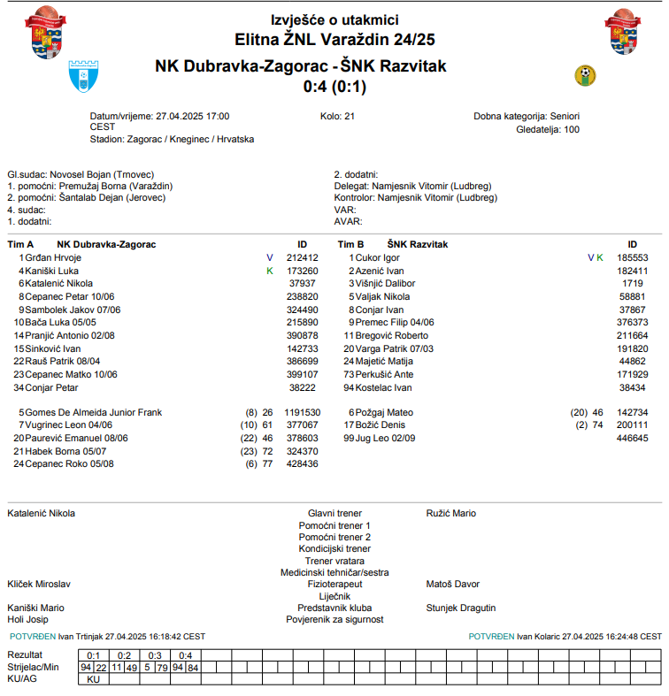 NK Dubravka-Zagorac – ŠNK Razvitak 0:4