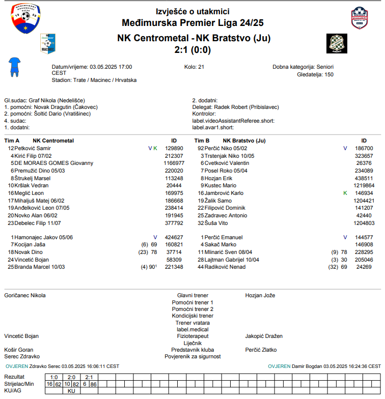 –Jednostavno imamo problema s utakmicama kod kuće, ekipe nam postave blok i tu teško dolazimo do prilika, radimo na tome,radimo na energiji, na dobrom smo putu. Mislim da smo zaslužili danas tri boda, tri igrača nam se čistilo s kartonima, igrači koji su ušli stvarno su dobro odreagirali i to je velika vrijednost ekipe– trener Centrometala, Nikola Goričanec.