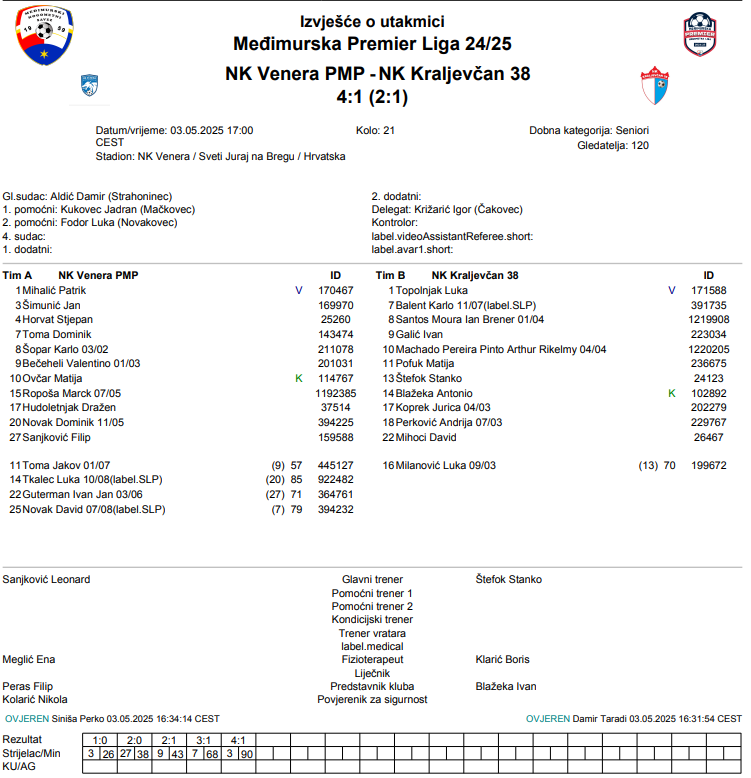 NK Venera PMP – NK Kraljevčan 38 4:1
