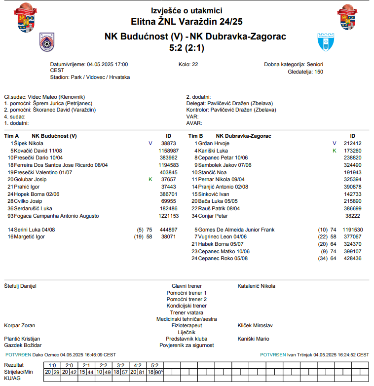 NK Budućnost (V) – NK Dubravka-Zagorac 5:2