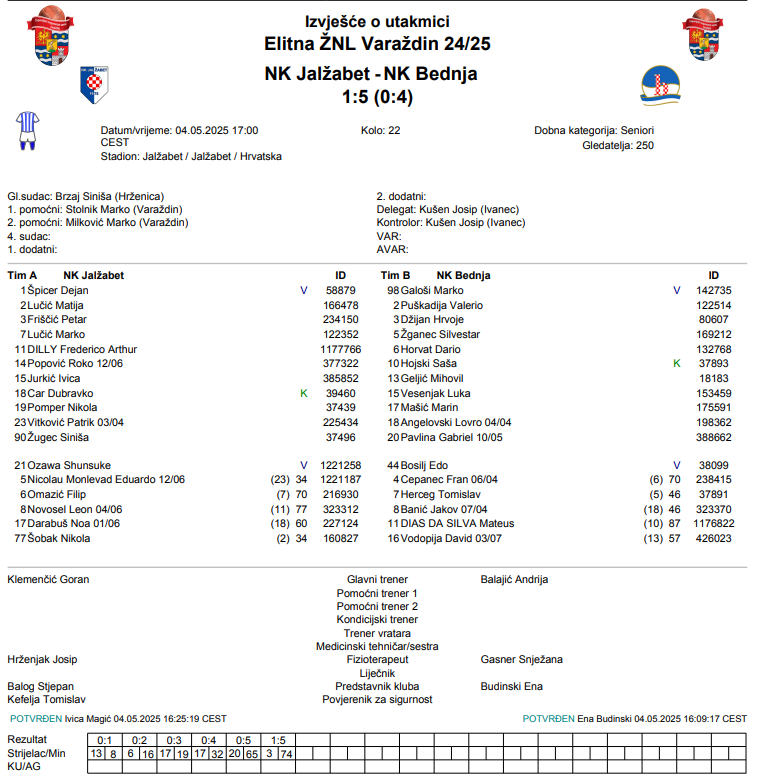 –Nismo dobro ušli u tekmu, naivno smo primili tri brza gola. Nismo držali disciplinu u igri od početka tekme, a kad igraš protiv ekipe poput Bednje svaka greška košta duplo! Rutinirana i zaslužena pobjeda gostiju, koji su definitivno najbolja ekipa lige bez konkurencije!-Goran Klemenčić, trener momčadi NK Jalžabet.