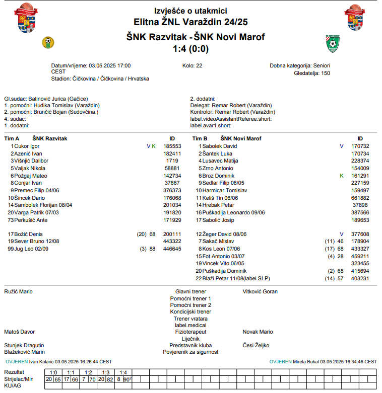 ŠNK Razvitak – ŠNK Novi Marof 1:4