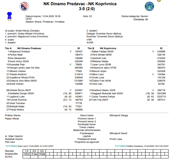 NK Dinamo Predavac – NK Koprivnica 3:0 (2:0)