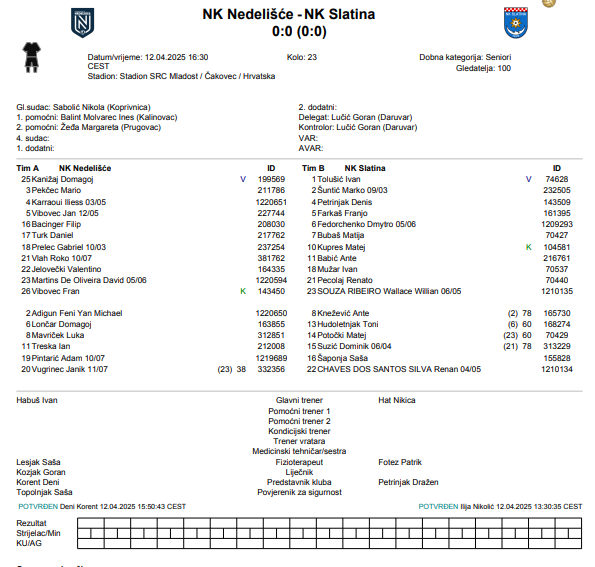 NK Nedelišće – NK Slatina 0:0 (0:0)