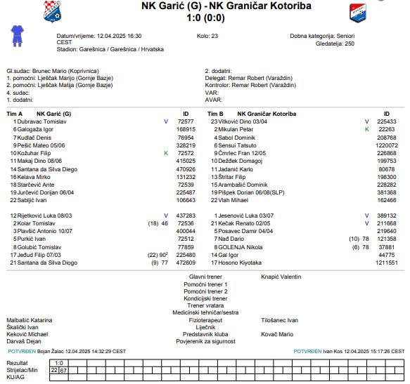 NK Garić (G) – NK Graničar Kotoriba 1:0 (0:0)
