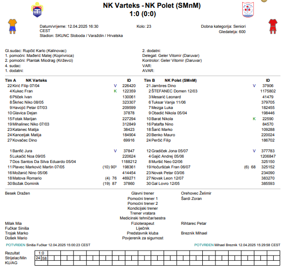 NK Varteks – NK Polet (SMnM) 1:0 (0:0)