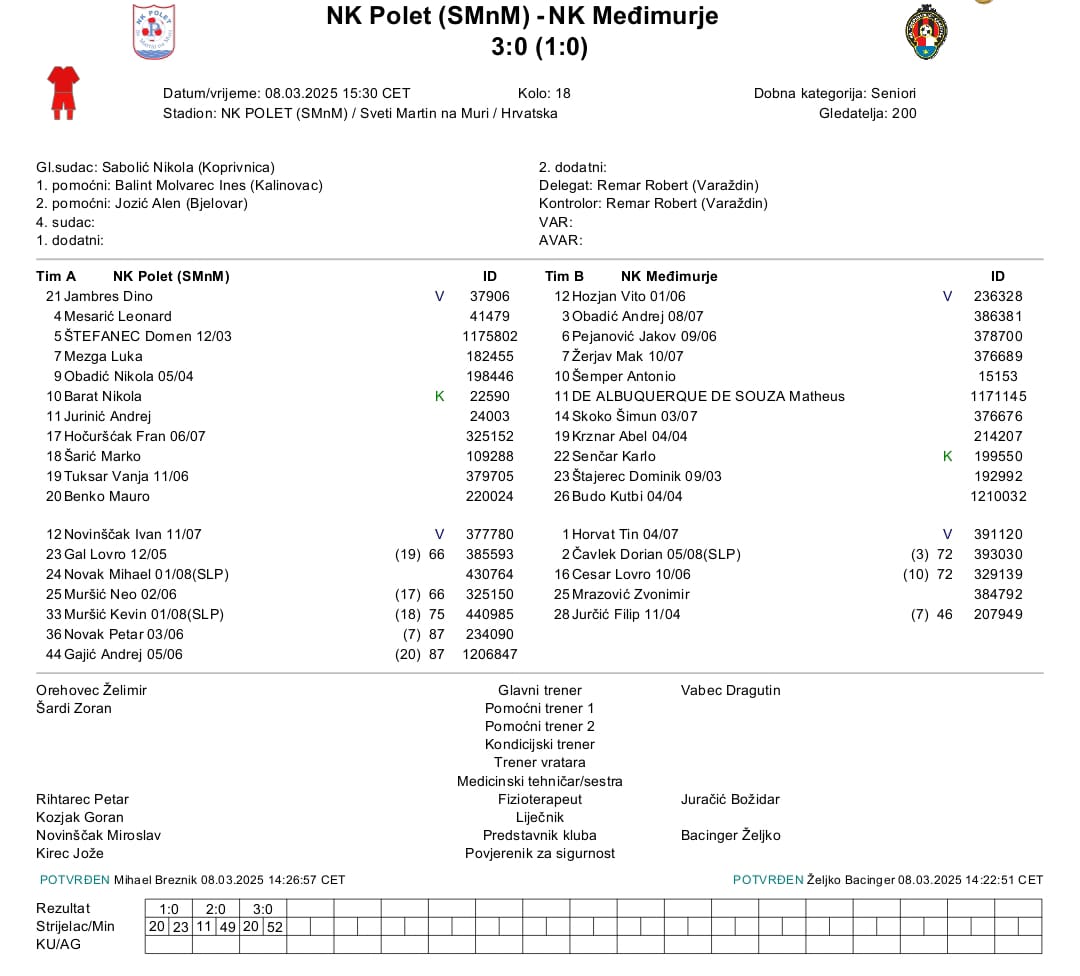 NK Polet (SMnM) – NK Međimurje 3:0 (1:0)