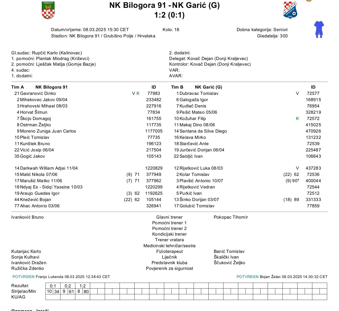 Trener NK Bilogore 91, Željko Ostrman: “Zaslužena pobjeda Garića, kojem čestitam. Mi svoje šanse nismo iskoristili, što su oni kaznili i iz dvije kontre zabili za 2:0.”