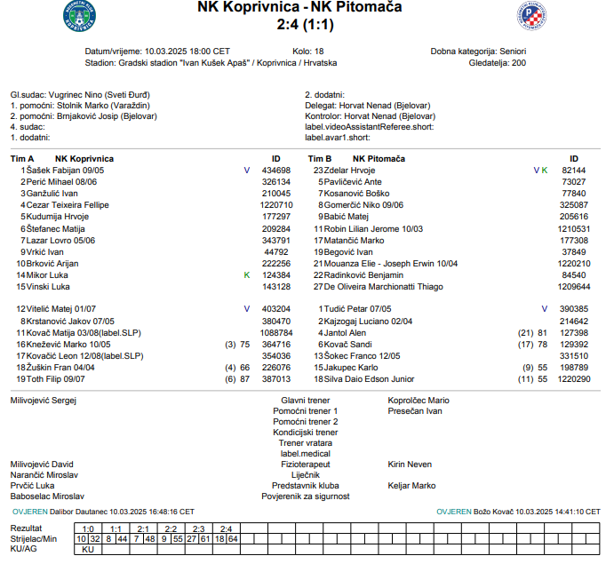 Znali smo da je Koprivnica mlada i poletna ekipa s nekoliko iskusnijih igrača, posebno odličnim Vrkićem i mladim Brkovićem. To više nije ista momčad od prošle polusezone – sada su mnogo opasniji! Dvaput smo gubili, ali smo uspjeli preokrenuti utakmicu u svoju korist, čime smo pokazali karakter, želju i volju. Nogomet se igra zbog golova, a danas smo mi u tome bili bolji. No, nema opuštanja – idemo dalje, utakmicu po utakmicu! Čestitam svim akterima na odličnoj predstavi, jer upravo ovakav nogomet volimo!”