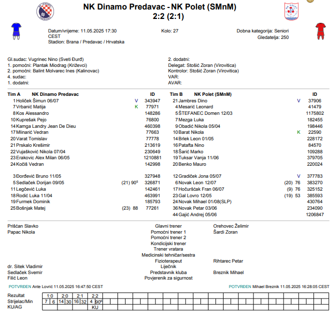 NK Dinamo Predavac – NK Polet (SMnM) 2:2 (2:1)