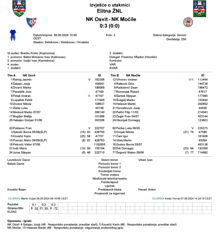 “Utakmica je bila dosta napeta prvo poluvrijeme, Osvit je imao prilike, a mi smo u prvih dvadesetak minuta bili nedorečeni. Drugo poluvrijeme smo zabili rane golove te naposljetku rezultat je mogao biti i veći.” – zadovoljan je bio Antun Havaić, trener Močila.