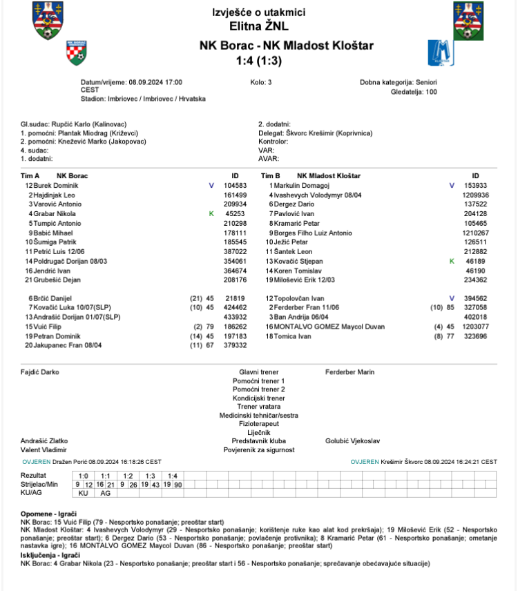 “Ušli smo bojažljivo u utakmicu, zatim došlo je do kaznenog udarca protiv nas iz kojeg je Borac poveo. No, pokazali strpljivost u kreiranju šansi te fizičku nadmoć što nas je dovelo do preokreta. Naravno, dodatno nas je pogurao crveni karton Borca. Čestitam svojim igračima na pobjedi!” – rekao je Marin Ferderber, trener Kloštrana.