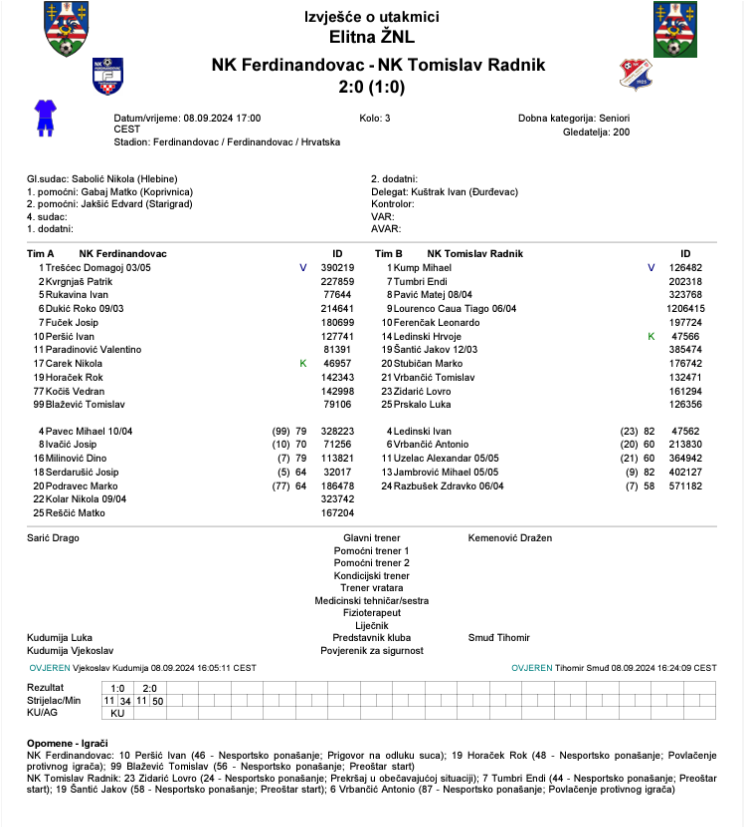 Ferdinandovčani su pred 200 gledatelja osvojili prva tri boda ove sezone, dok je Tomislav-Radnik upisao prvi poraz u ovom prvenstvu. Dvostruki strijelac za domaću momčad bio je Paradinović, postigavši u svakom poluvremenu po jedan zgoditak.