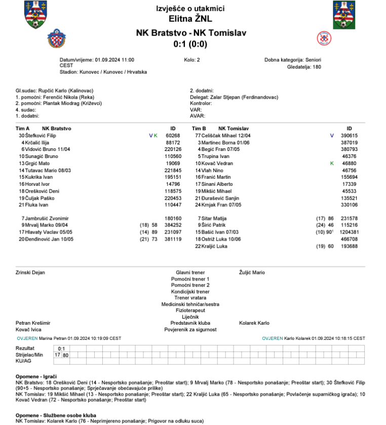 “Odigrali smo discipliniranu utakmicu, bili smo otpočetka agresivni. Bili smo bolji prvo poluvrijeme, u drugo smo malo lošije ušli, ali uspjeli smo zabiti. Istaknuo bi našeg vratara koji spriječio dvije izgledne situacije za domaću momčad.” – kratak je bio Mario Žuljić, trener Tomislava.
