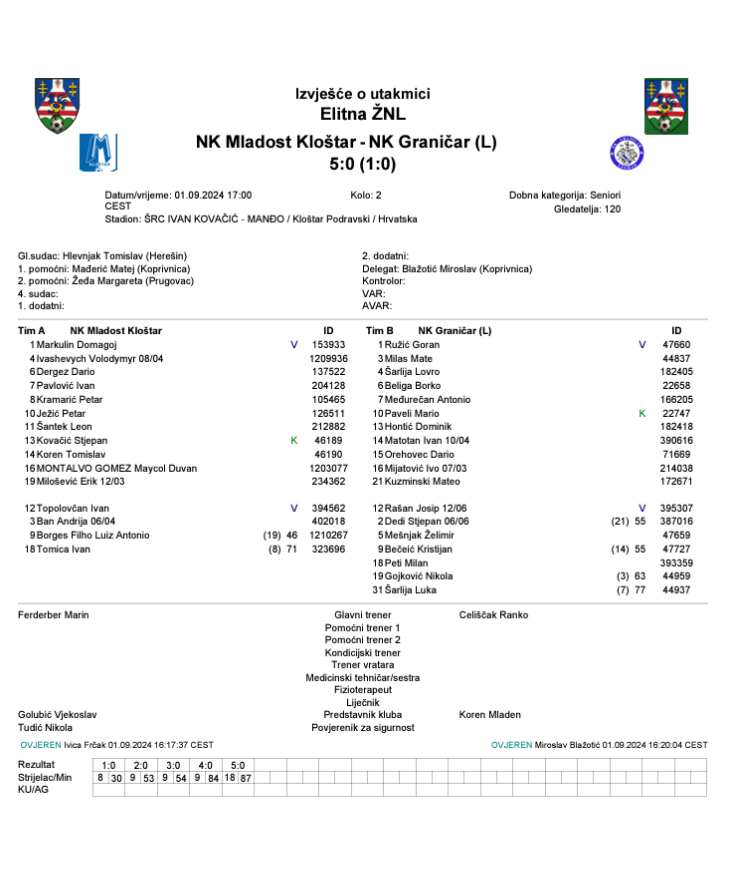 MLADOST KLOŠTAR PODRAVSKI – GRANIČAR LEGRAD 5:0