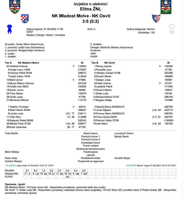 U Molvama je došlo do iznenađenja jer đelekovečki Osvit nanio je domaćima drugi poraz u isto toliko kola. Gledatelji su mogli uživati u neizvjesnoj utakmici s čak osam golova, a egzekutori kod domaćih bili su Marić, Karan i Lončar, dok su gostima slavlje donijeli Bogdan, Lopatnik, Zlatar i Salajec, a nesretno je svoju mrežu pogodio, ponovo, Marić.