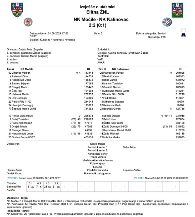 “Opet nas je pogodila nesreća jer smo ostali s igračem manje. Tako smo igrali 80 minuta i poveli 0:2, ali nismo uspjeli zadržati vodstvo. Ostaje žal za pobjedom, čestitam momcima na trudu, zalaganju i rovovskoj borbi.” – konstatirao je Zlatko Topolčić, trener Kalinovčana.