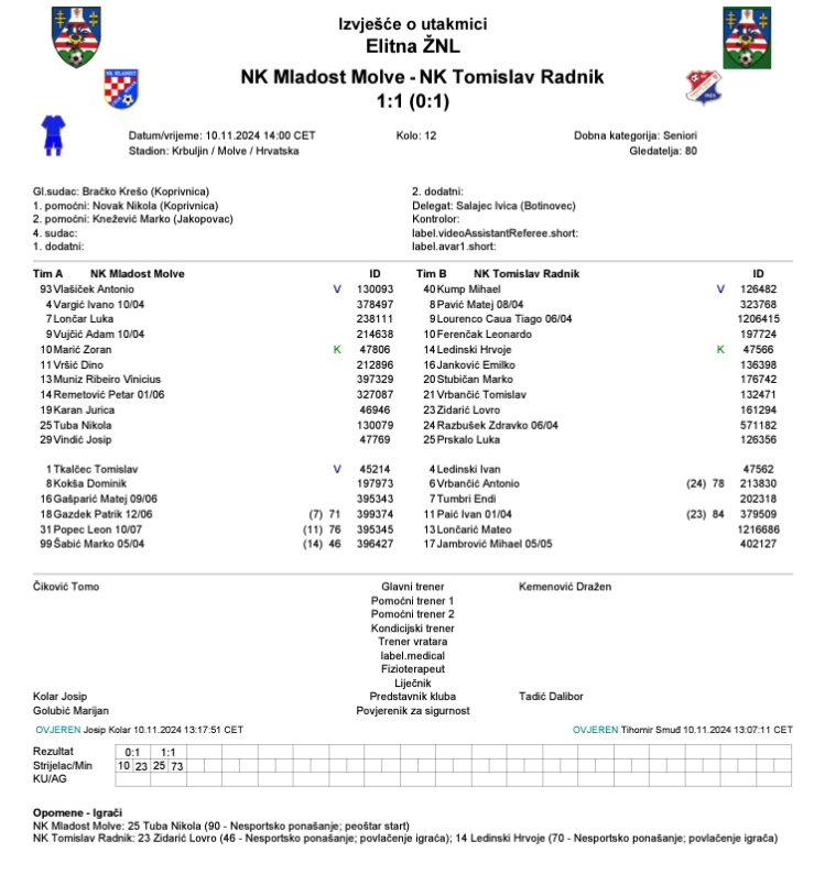 “Čestitam domaćinu na fer i korektnoj utakmici. Teško je iz utakmice u utakmicu komentirati stative i prečke. Jednostavno kao da smo začarani i lopta neće u gol. Treba samo raditi i sve će nam se vratiti.” – konstatirao je Dražen Kemenović, trener Tomislav-Radnika.