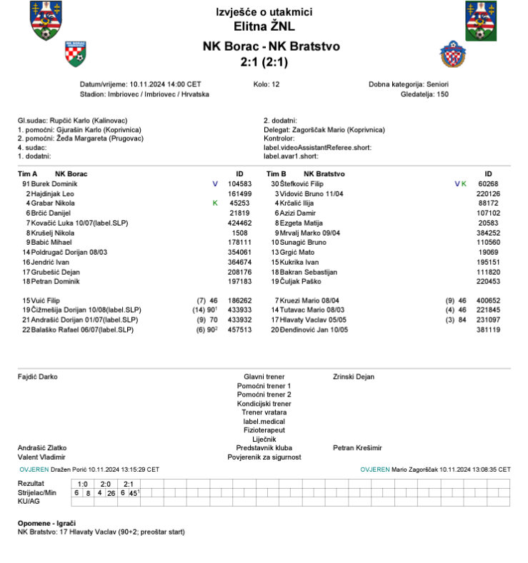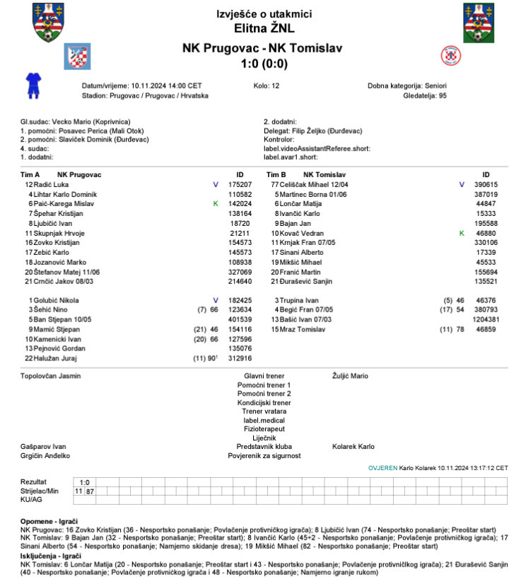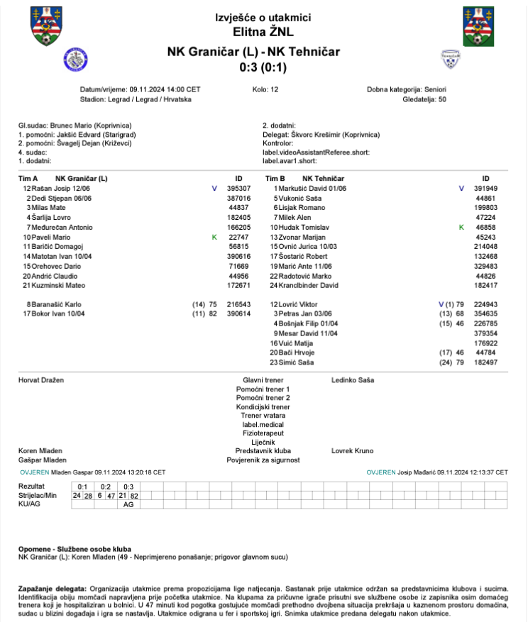 “Opravdali smo ulogu favorita u utakmici protiv Graničara. Nažalost, dočekao nas je iznimno loš teren i teško je bilo uspostaviti našu igru pa je bilo dosta neforsiranih grešaka s jedne i druge strane. Na kraju smo uspjeli postići tri pogotka i rutinski pobijediti utakmicu. Veseli me da nismo primili pogodak, iako su domaćini imali dvije opasne kontre, ali naš vratar je odlično reagirao kod tih situacija. Idemo se u miru pripremiti za zadnje kolo jesenskog dijela prvenstva i derbi utakmicu s Borcem. Imamo problema sa ozljedama (kao i većina klubova), ali napravit ćemo najbolji mogući sastav i pokušati završiti polusezonu s pobjedom!” – izjavio je legendarni Kruno Lovrek, trener cvetkovečkog Tehničara.