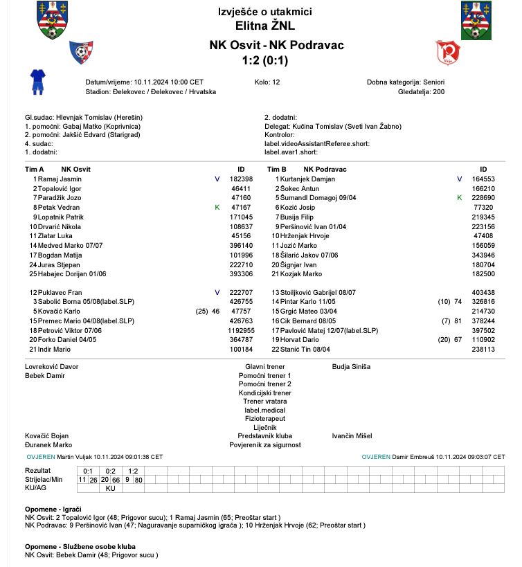 “U ovom trenutku smo kvalitetnija ekipa od Osvita što smo i pokazali danas. Moja ekipa je ispoštovala sve što smo dogovorili u svlačionici i na tome im čestitam. Još jednom pohvale našim navijačima koji su uvijek uz nas.” – zadovoljan je bio Siniša Budja, trener virovskog Podravca.
