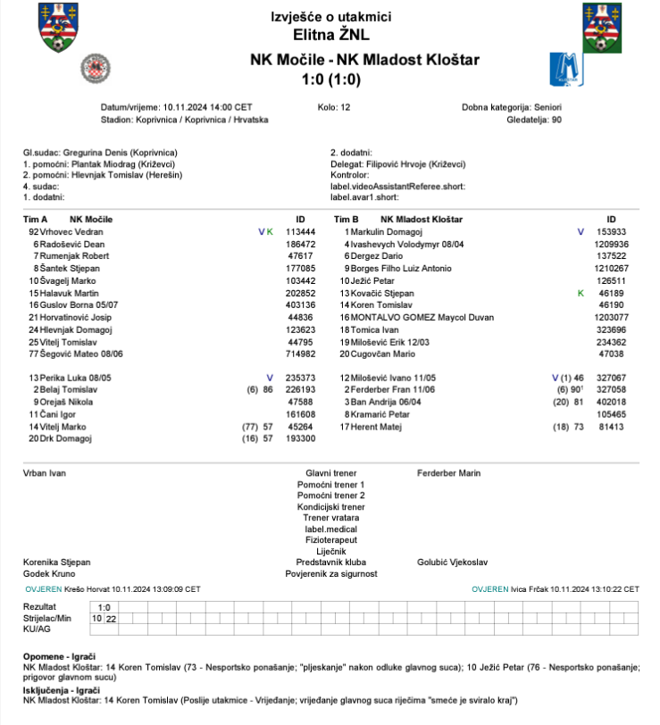 MOČILE – MLADOST KLOŠTAR PODRAVSKI 1:0