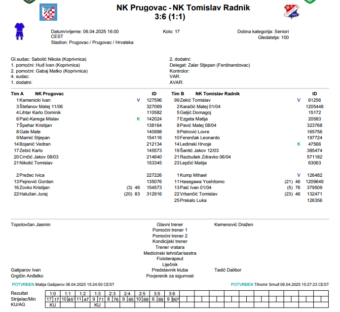 PRUGOVAC – TOMISLAV RADNIK 3:6