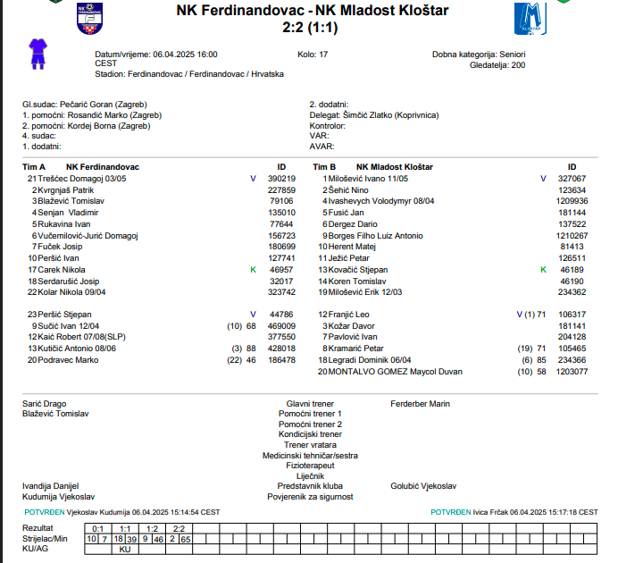FERDINANDOVAC – MLADOST KLOŠTAR 2:2