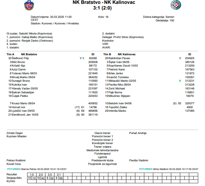 “Prije svega, čestitke domaćinu na fer i korektnoj utakmici. Izgledali smo jako dobro na terenu, bez obzira na to što rezultat to ne pokazuje. Sve što smo se dogovorili, ispoštovali smo, ali lopta jednostavno nije htjela u gol. Na početku utakmice, umjesto da povedemo 0:2, primamo nespretan pogodak, što nas je malo poljuljalo. Nogomet je zato zanimljiv i nepredvidiv. Hvala našim navijačima koji nas prate, a mi nastavljamo trenirati. Bez rada, truda i zalaganja nema ni rezultata.” – izjavio je Zlatko Topolčić, trener Kalinovca.