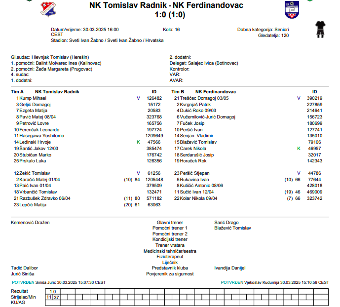 TOMISLAV RADNIK – FERDINANDOVAC 1:0