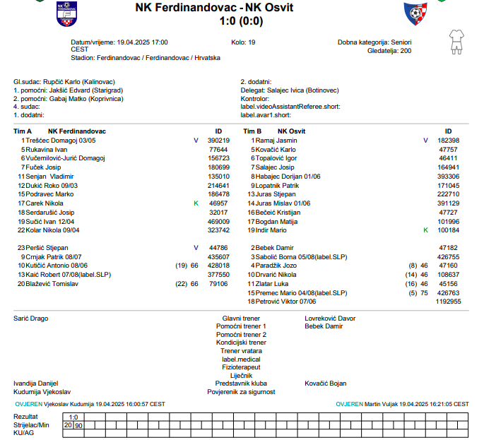 “Pozdrav, bila je otvorena utakmica s obje strane i bilo je dosta prilika. Đelekovac je dobro posložena ekipa. Na kraju smo postigli gol iz lijepe akcije u 90. minuti. Čestitam dečkima na pristupu i zalaganju, jer smo ponovno igrali bez četiri standardna igrača. Prvenstvo je zanimljivo i nigdje ne možeš lagano upisati tri boda, bez obzira na ulogu favorita. Sretan Uskrs!” – dodao je Danijel Ivandija, trener Ferdinandovca.