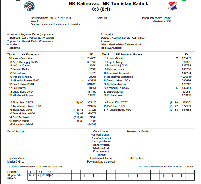 KALINOVAC – TOMISLAV RADNIK 0:3
