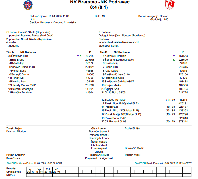 U Kunovcu je Bratstvo ugostilo Podravac iz Virja, no raspoloženi gosti deklasirali su domaćina s uvjerljivih 0:4. Najbolji u redovima Podravca bio je Ivan Šignjar, koji je briljirao s hat-trickom.