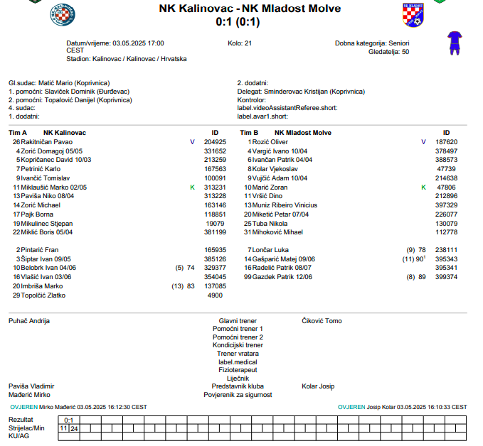 “Susjedski derbi, dobar teren, dobro suđenje. Taktička disciplina i puno trke donijeli su prevagu za pobjedu. Neutralizirali smo ključne igrače Kalinovca, pa domaćin nije mogao razviti svoju igru. U drugom poluvremenu dominirali smo po lijevoj strani, ali smo bili opasni iz polukontre te smo možda mogli postići još koji gol. Jedva čekamo sljedeću tekmu da se borimo za nove bodove!” – dodao je Tomo Čiković, trener Mladost Molvi.