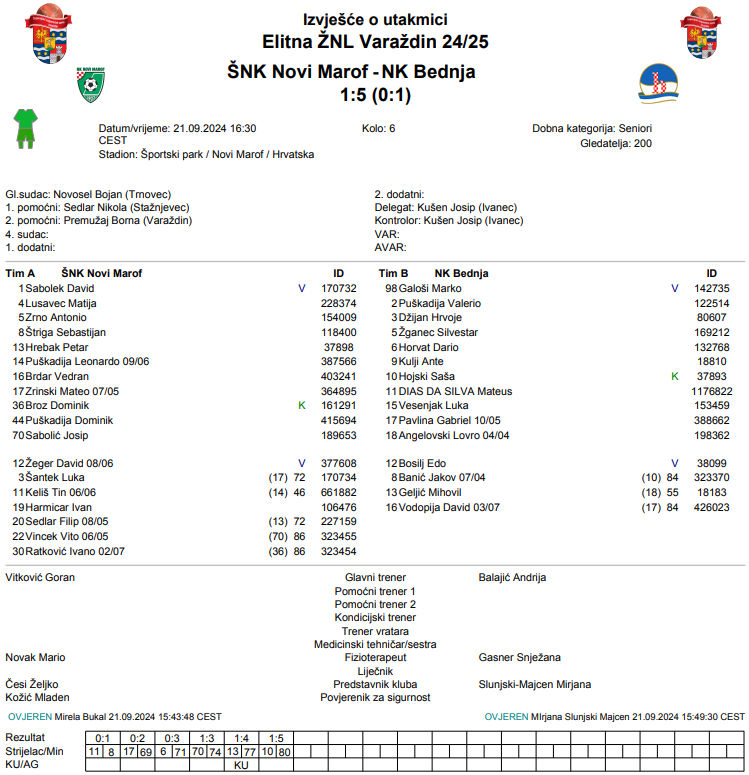 ŠNK Novi Marof – NK Bednja 1:5