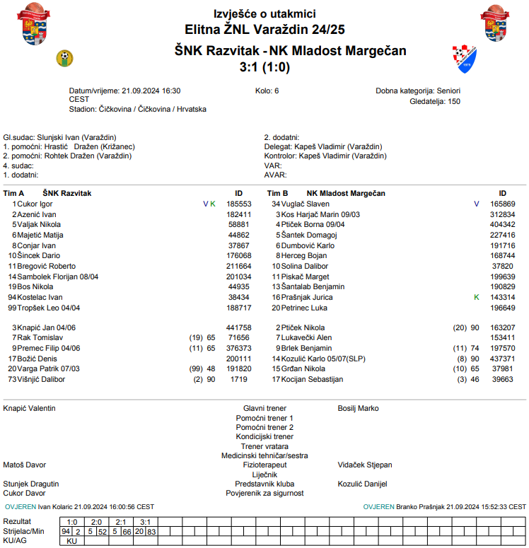 ŠNK Razvitak – NK Mladost Margečan 3:1