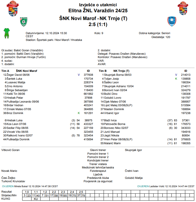 ŠNK Novi Marof – NK Trnje (T) 2:5