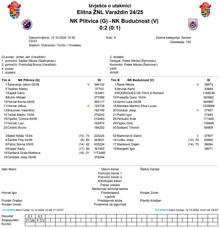 NK Plitvica (G) – NK Budućnost (V) 0:2