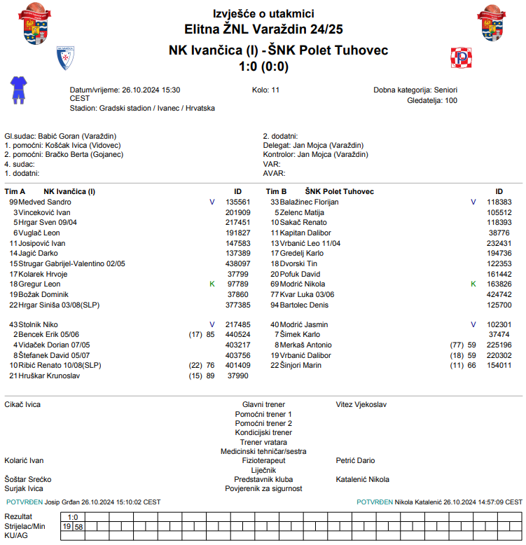 Ivančica je na Gradskom stadionu bila bolja od gostiju iz Tuhovca. Jedini pogodak za svoju momčad postigao je Dominik Božak. Dominik je pravi motor svoje momčadi jer na devet odigranih utakmica ima šest pogodaka. Minimalna pobjeda dovoljna je bila Ivančici da se udalji od donjeg dijela tablice i sada imaju samo dva boda manje od današnjeg rivala.
