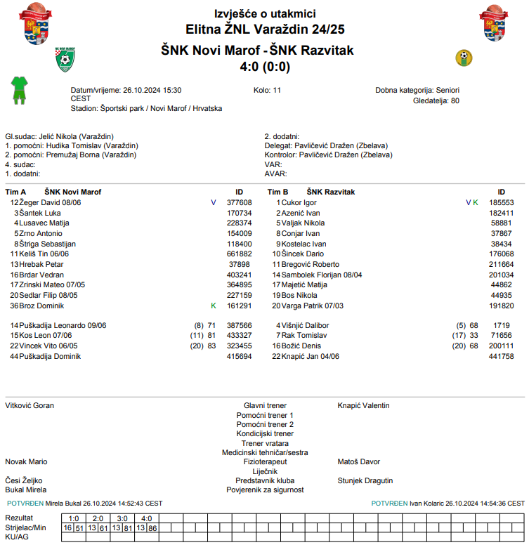 ŠNK Novi Marof – ŠNK Razvitak 4:0